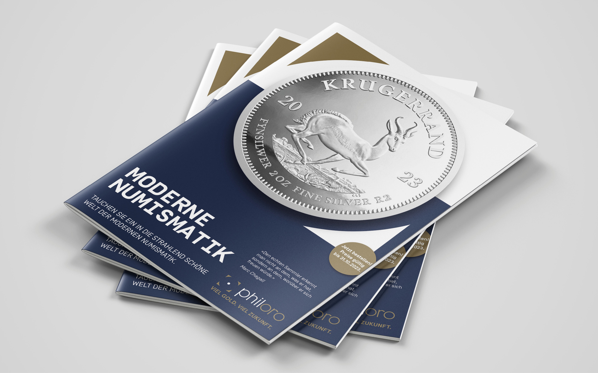 Für Philoro konzipierte ich den ersten offiziellen Verkaufskatalog des Unternehmens. Ziel war es, das Sortiment klar zu strukturieren und die verschiedenen Münzlinien übersichtlich sowie visuell ansprechend darzustellen. Die thematische Gliederung und eine klare Bild- und Typografie-Systematik ermöglichen eine verständliche Orientierung innerhalb des Produktsortiments.